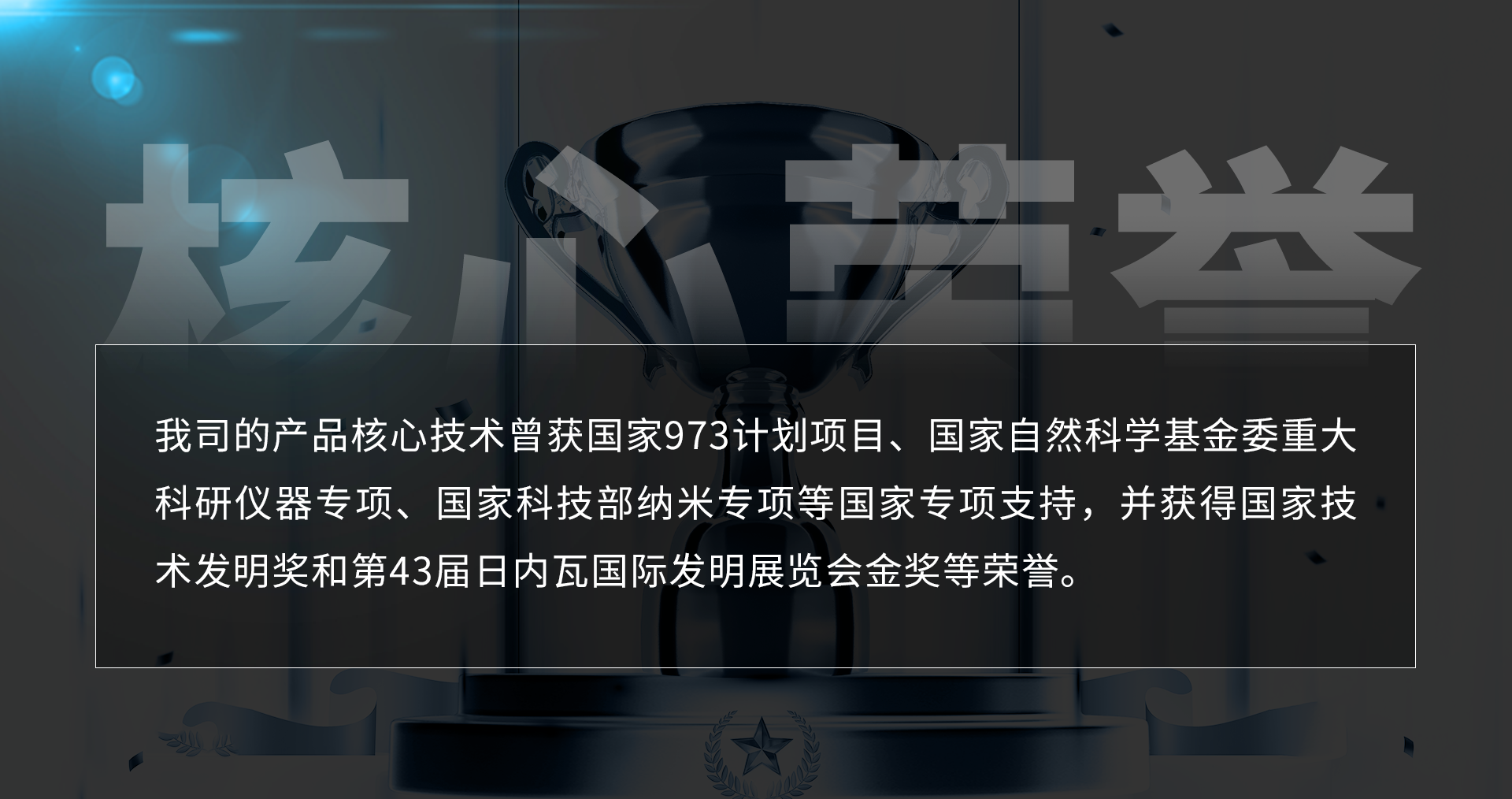 我司的产品核心技术曾获国家973计划项目、国家自然科学基金委重大科研仪器专项、国家科技部纳米专项等国家专项支持,并获得国家技术发明奖和第43届日内瓦国际发明展览会金奖等荣誉。