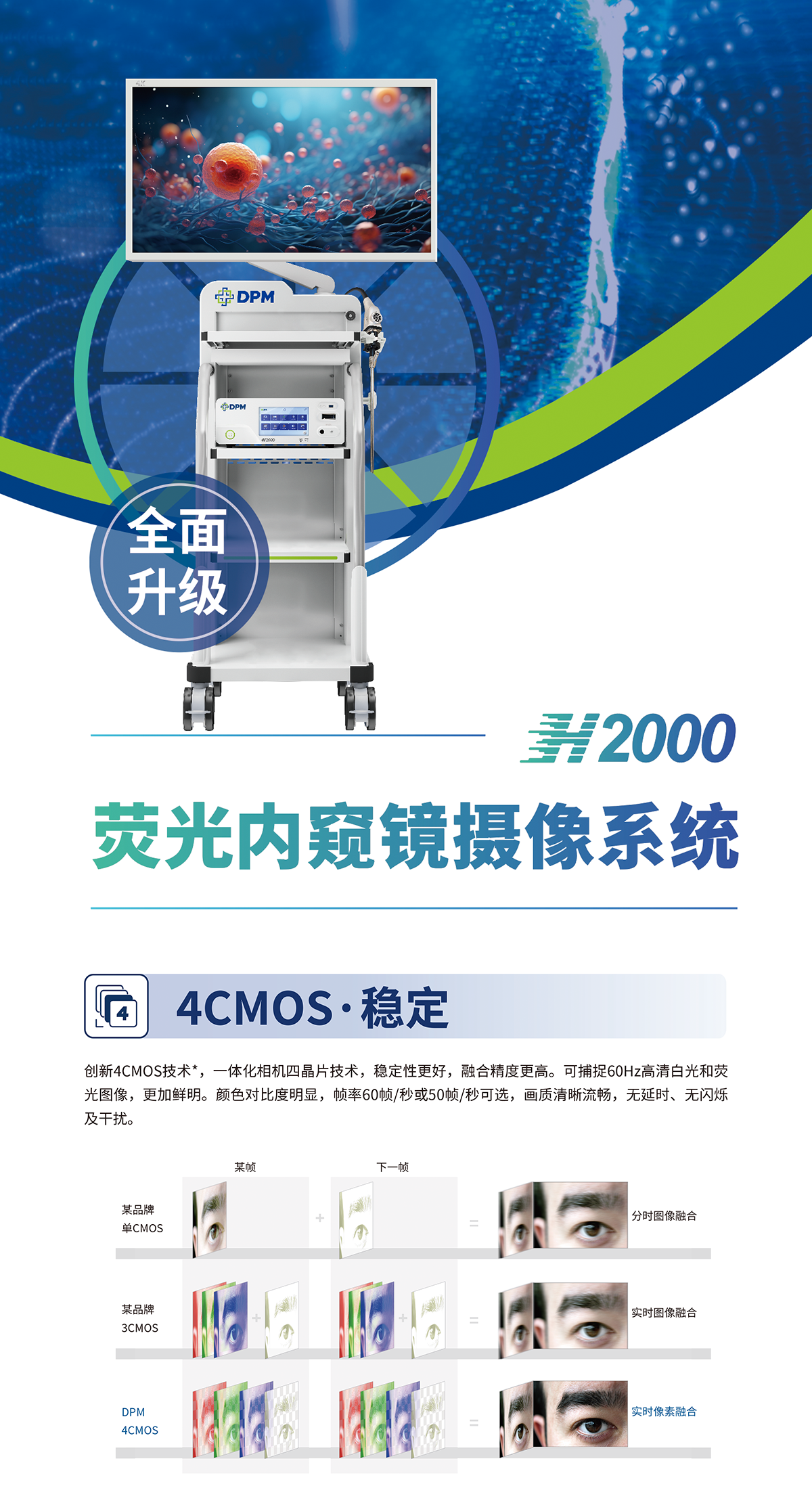 1. 本产品采用4CMOS技术,一体化相机四晶片技术,稳定性更好,融合精度更高。可捕捉60Hz高清白光和荧光图像,更加鲜明。颜色对比度明显,帧率60帧/秒或50帧/秒可选。